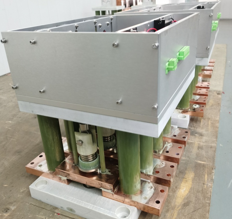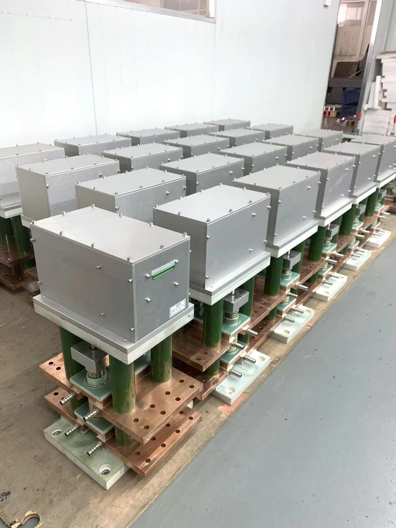 我公司生產的隔離開關是專門為中頻電源回路設計的開關設備。主電路極數為二極,動靜觸頭全部應用鍍銀工藝。操作方式為手動,具有設計結構合理,以簡化日常維護工作,外形美觀,工作可靠的特點。主要分 5000A 和 8000A 兩種。